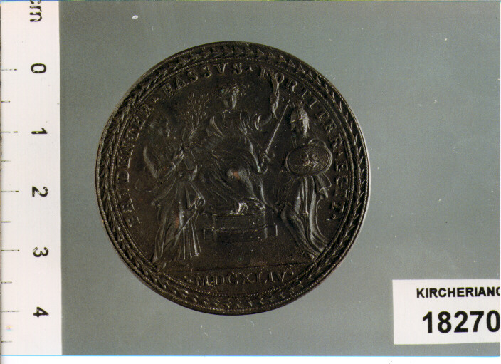 D/ VRBANVS . VIII . PON . MAX . AN . XXI, BUSTO A D. CON CAMAURO E MOZZETTA; SOTTO . G M .; R/ PRVDENTER . PASSVS . FORTITER . EGIT ., PACE SEDUTA TRA PRUDENZA E FORZA; IN ESERGO . MDCXLIV