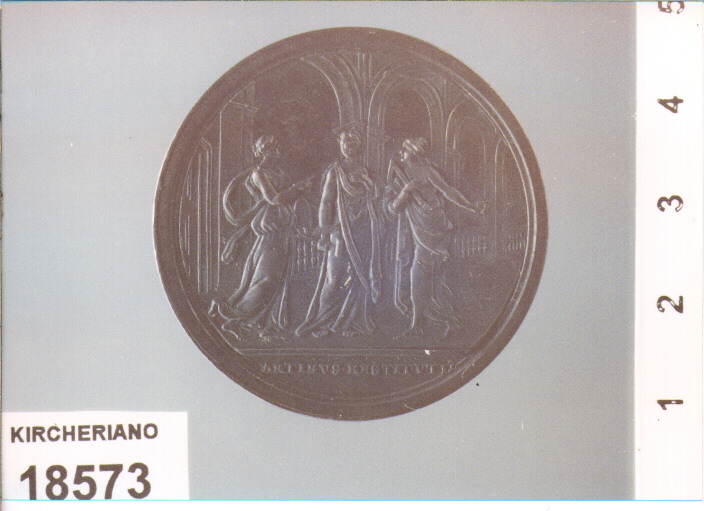 D/ CLEMENS XIV . PONT . M . A . V ., BUSTO A D. CON CAMAURO, MOZZETTA E STOLA; NEL TAGLIO CROPANESE . F .; R/ LE TRE ARTI; IN ESERGO ARTIBVS . RESTITVTIS