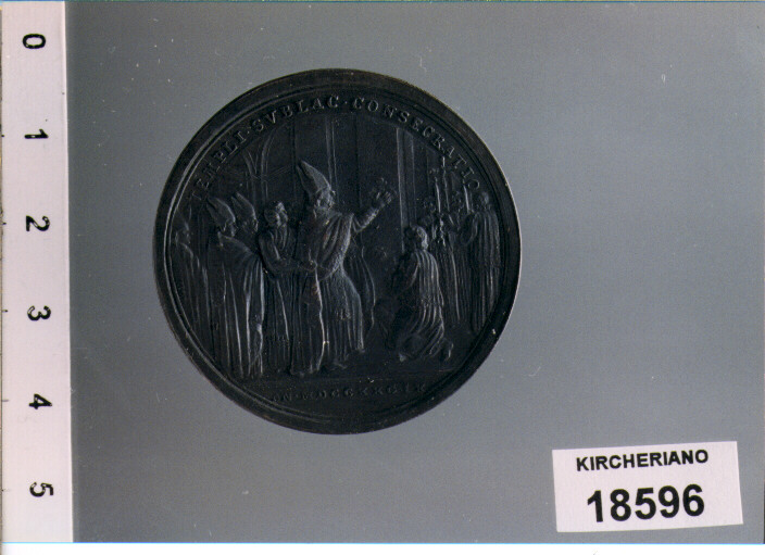 D/ PIVS . SEXTVS . PONT . MAX . A . XV .,BUSTO A D.;NEL TAGLIO G.H.;R/ TEMPLI . SVBLAC . CONSECRATIO .,PONTEFICE CONSACRA LA CHIESA DI SUBIACO;IN ESERGO, AN . MDCCXXCIX