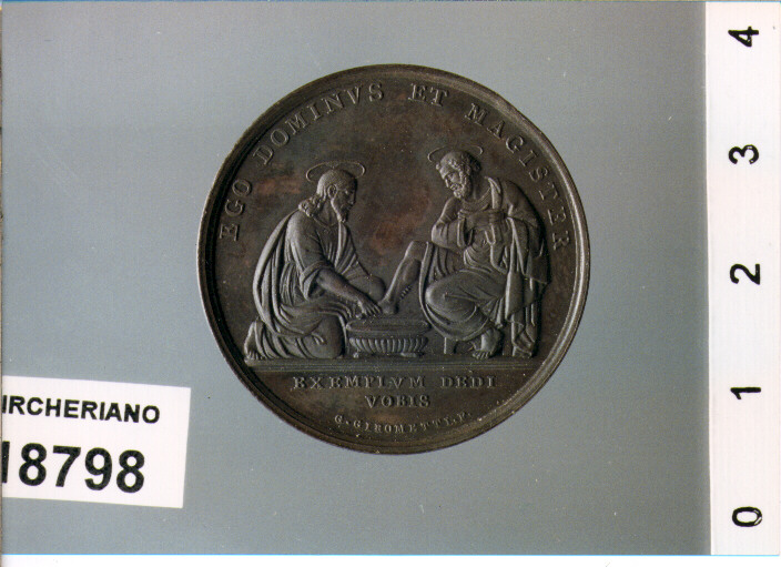 D/ PIVS IX . PONT . MAX . AN . XVIII ., BUSTO A S.; SOTTO I . BIANCHI F .; R/ EGO DOMINVS ET MAGISTER, CRISTO LAVA I PIEDI A S. PIETRO; IN ESERGO EXEMPLVM DEDI / VOBIS; SOTTO GIROMETTI . G. F