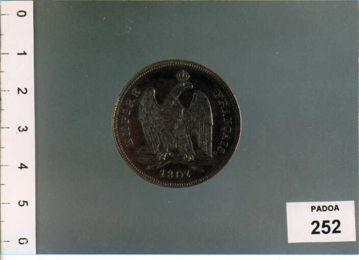 D/ NAPOLEON EMPEREUR, BUSTO DI TRE QUARTI A D.; NEL TAGLIO VASSALLO.; R/ EMPIRE FRANCAIS, AQUILA SORMONTATA DA CORONA; SOTTO 1807