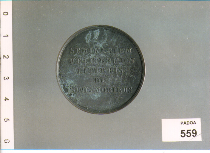 D/ S. CLEMENS I . PP . ET MARTYR, BUSTO DEL SANTO DO PROSPETTO; SOTTO G. GENNARI; R/ SEMINARIUM / VELITERNUM / LITTERIS / ET / BONIS MORIBUS