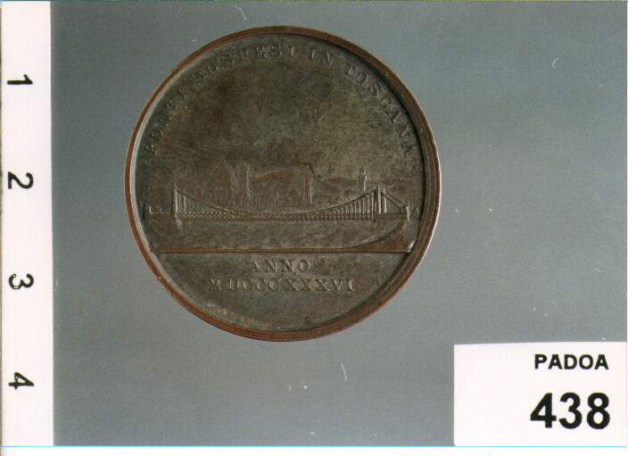 D/ LEOPOLDO II . G . D . DI TOSCANA, TESTA A D.; SOTTO A . FABRIS D'UDINEF.; R/ PONTI SOSPESI IN TOSCANA, VEDUTA DEL PONTE DI FERRO SULL'ARNO; IN ESERGO, ANNO / MDCCCXXXVI