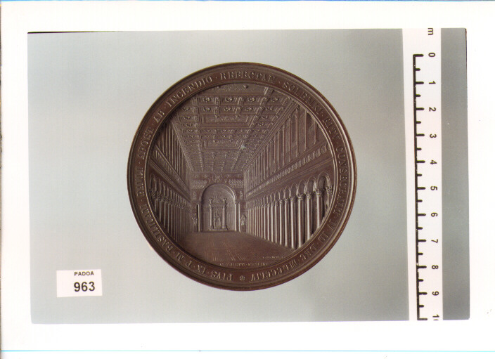 D/ PIVS IX.PONT.MAX.,BUSTO A S.; SOTTO I.BIANCHI.F.; R/ PIVS.IX.P.M.BASILICAM.PAVLI.APOST.AB.INCENDIO.REFECTAM.SOLEMNI.RITV.CONSECRAVIT.IV.ID.DEC.MDCCCLIV.,INTERNO DELLA BASILICA DI S.PAOLO; SOTTO I.BIANCHI.F.; IN ESERGO AL.POLETTI.ARCH.INV