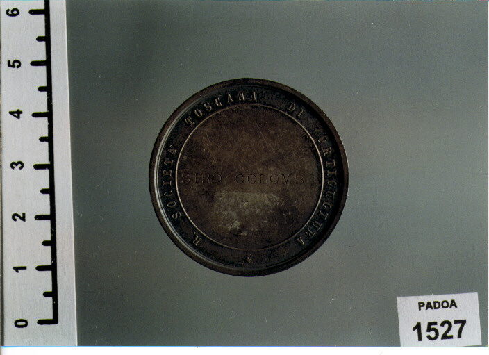 D/ ESPOSIZIONE INTERNAZ.LE DI ORTICOLTURA FIRENZE 1874, FIGURA FEMMINILE IN MOVIMENTO A D. ; IN ESERGO, PIERONI- FIRENZE; R/ R. SOCIETA' TOSCANA DIORTICOLTURA; NEL CAMPO, SIRO COLOMBO