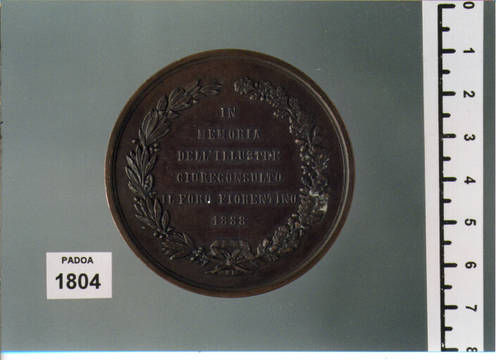 D/ FERDINANDO ANDREUCCI, BUSTO A S. ; SOTTO, ITALO VAGNETTI INC. FIRENZE;R/ IN/ MEMORIA/ DELL'ILLUSTRE GIURECONSULTO/ IL FORO FIORENTINO/ 1888, ENTRO CORONA DI QUERCIA E ALLORO
