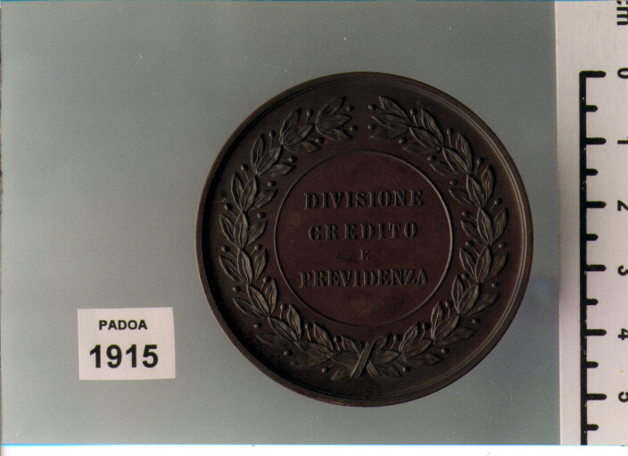 D/ ESPOSIZIONE UMBRA IN PERUGIA 1899, STEMMA DI PERUGIA; SOTTO, D. ZANETTI; R/ DIVISIONE/ CREDITO/ E/ PREVIDENZA, ENTRO CORONA DI ALLORO