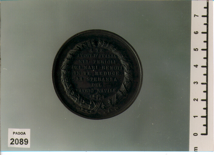 D/ TOMMASO DI SAVOIA DUCA DI GENOVA MDCCCLXXIV, BUSTO A S. ; SOTTO, G. GIANI INC. TORINO- ROMA; R/ A TE/ I VOTI D' ITALIA/ NEI PERIGLI/ DEI MARI REMOTI/ IN TE REDUCE/ LA SPERANZA/ DEL/ PATRIO NAVILE, ENTRO CORONA DI ALLORO