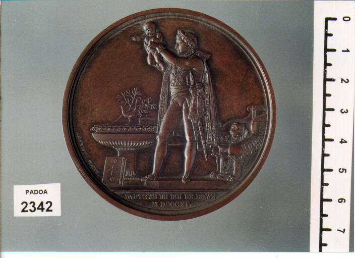 D/ TESTA LAUREATA A S. ; NEL TAGLIO, ANDRIEU F. , SOTTO, DENON D. ; R/ L'IMPERATORE SOLLEVA IL NEONATO SUL FONTE BATTESIMALE; SOTTO, ANDRIEU FECIT;IN ESERGO, BAPTEME DU ROI DE ROME/ M. DCCCXI