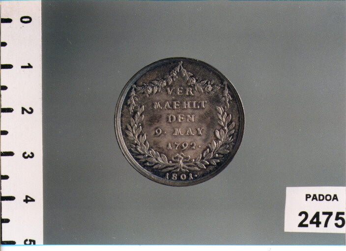 D/ PR. MAXIMILIAN V. SACHS. CAROLINA GEB. PR. V. PARMA. , DUE BUSTI A D. ; SOTTO, HOECKNER. F; R/ VER/ MAEHLT/ DEN/ 9 MAY/ 1792, ENTRO CORONA DI ALLORO; SOTTO, 1801