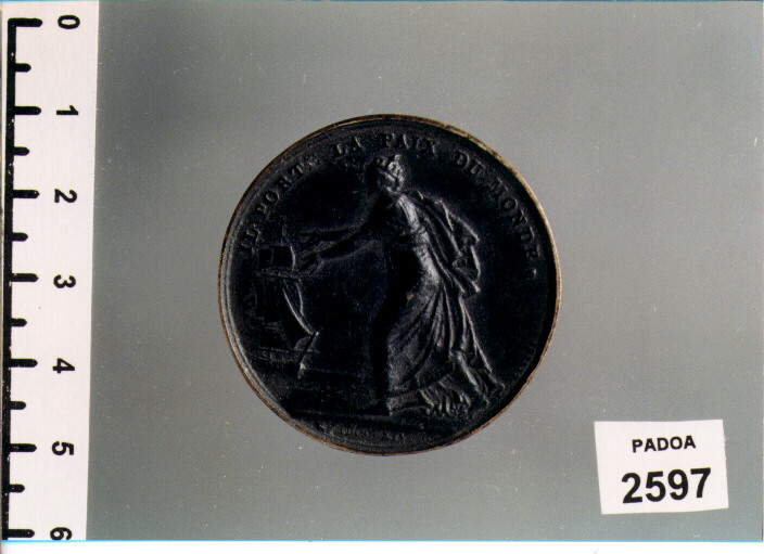 D/ LOUIS XVIII ROI DE FRANCE ET DE NAVARRE. , TESTA A D. ; NEL TAGLIO, ANDRIEU F. ; R/ IL PORTE LA PAIX DU MONDE. , FIGURA FEMMINILE STANTE VERSO S. ACCOGLIE UN VASCELLO; IN ESERGO, [...]