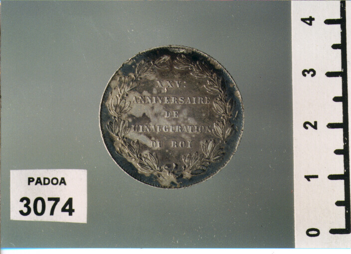 D/ FIGURA FEMMINILE ALLEGORICA SEDUTA A S.; IN ESERGO, XXI JUILL. MDCCCLVI; R/ XXV.E/ ANNIVERSAIRE/ DE/ L'INAUGURATION/ DU ROI, ENTRO CORONA DI ALLORO