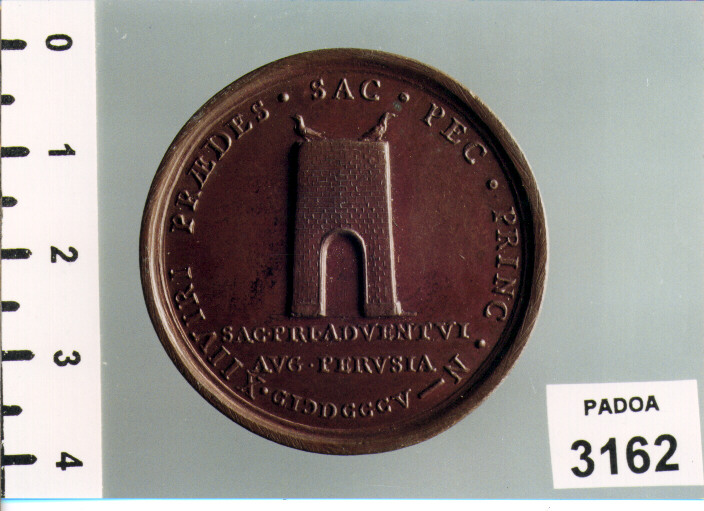 D/ PIVS VII. PONT. MAX., BUSTO A D.; R/ XII VIRI PRAEDES. SAC. PEC. PRINC. N-MDCCCV; NEL CAMPO, LA PORTA DI PERUGIA; SOTTO, SAC. PRI. ADVENTVI/ AVG. PERVSIA