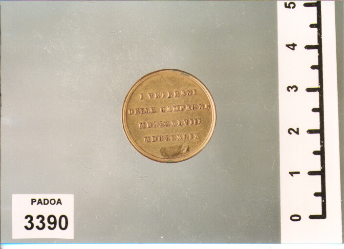 D/ CARLO ALBERTO, TESTA A S.; SOTTO, A. RESTELLI; R/ I VETERANI/ DELLE CAMPAGNE/ MDCCCXLVIII/ MDCCCXLIX