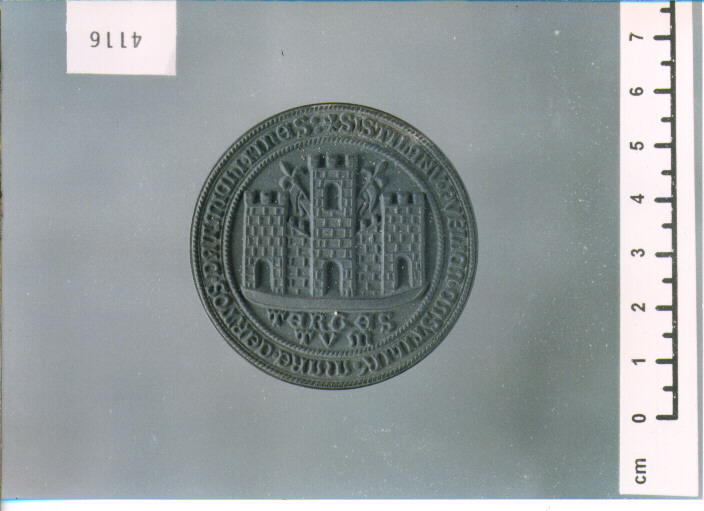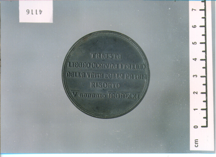D/ SISTILANV. PVBLICA. CASTILIR. MARE. CERTOS. DAT. [...] . [....] S, MURA TURRITE; IN ESERGO, TERGES/ TVM; R/ TRIESTE/ LIBERO COMVNE ITALICO/ NELLA VNITA' DELLA PATRIA/ RISORTO/ V GENNAIO MCMXXI