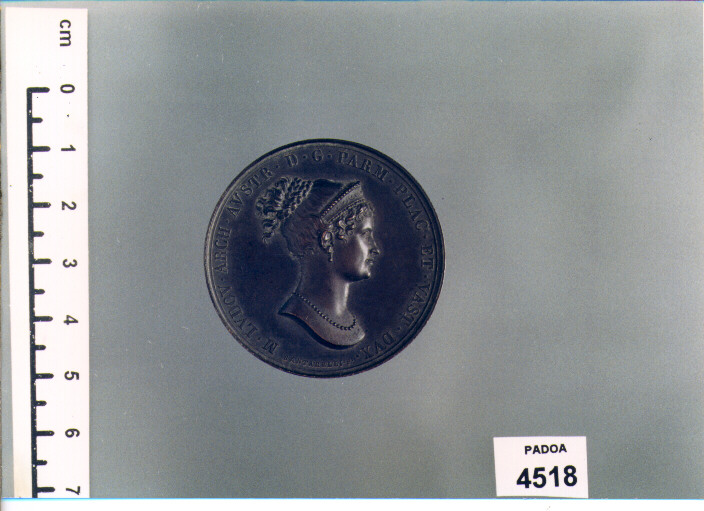 D/ M. LVDOV. ARCH. AVSTR. D. G. PARM. PLAC. ET. VAST. DVX., TESTA DIADEMATA A D.; SOTTO, SANTARELLI. F.; R/ VEDUTA DEL PONTE SUL TARO; IN ESERGO, TARO. FIRMIVS/ DENIQVE. REPRESSO/ M. DCCC. XVIII