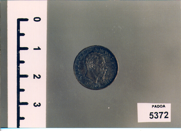 D/ VITTORIO EMANUELE II 1863, TESTA A D.; SOTTO, FERRARIS; R/ REGNO D'ITALIA; NEL CAMPO, 20/ CENTESIMI, SU DUE RAMI DI ALLORO; SOTTO T BN