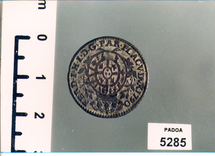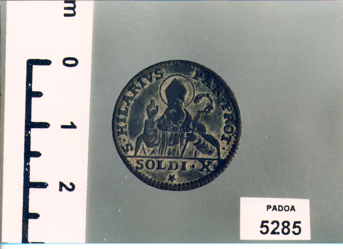 D/ FERD. I. H. I. D. G. PARM. PLAC. V. DVX. J790; R/ S. HILARIVS PAR PROT., MEZZA FIGURA DEL SANTO BENEDICENTE; IN ESERGO, SOLDI 10