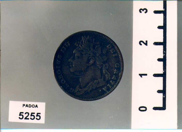 D/ GEORGIUS IIII DEI GRATIA, TESTA LAUREATA A S.; R/ BRITANNIAR: REX FID:DEF:, FIGURA FEMMINILE SEDUTA A D.; IN ESERGO, 1826