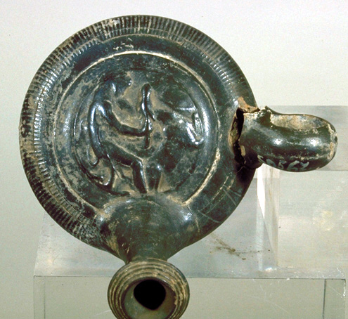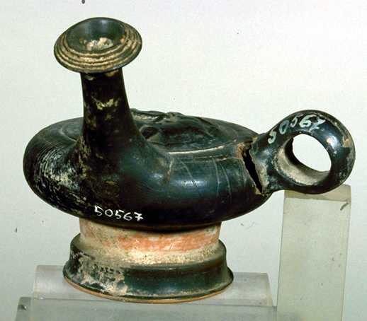 Bocchello modanato, lungo collo cilindrico, corpo lenticolare baccellato, ansa verticale ad anello, alto piede a listello modanato. Rappresentazioni figurate: sul corpo, a sinistra Eracle nudo con leonté in atto di afferrare per le corna la cerva cerinite