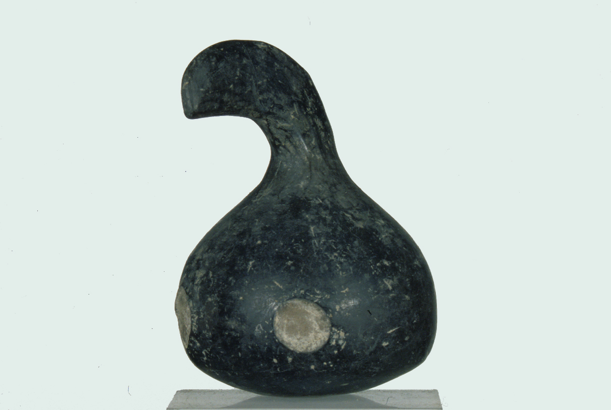 Corpo globulare appiattito anteriormente (forse di gallo), lunga coda a nastro ricurvo ingrossato, attacco delle zampe e del collo