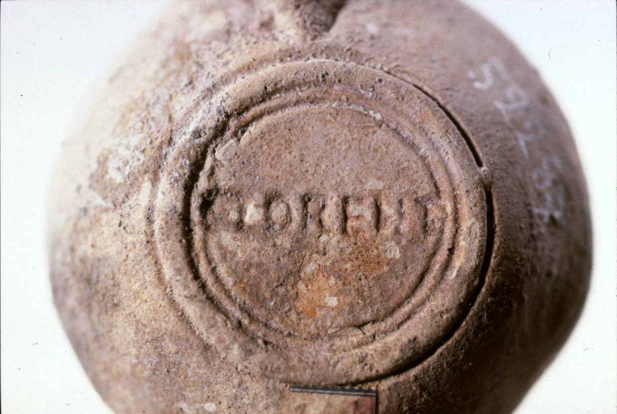 Lucerna a becco rotondo e corto, ansa verticale e forata , spalla liscia e leggermente inclinata liscia con tre solchi verso il piccolo disco decorato dalla raffigurazione dell tre Grazie: Fondo esterno : CLORENS.Per la forma e la decorazione si confronti Hellmann,M.C., Lampes Antiques de la Bibliothèque nationale de Paris II, Lampes pré-romaines et romanaines, Paris 1987, tavv. XXXII - XXXIII, n. 256, pp. 68 -69
