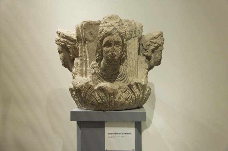 capitello di pilastro figurato, con teste femminili tra volute su ciascuna faccia
