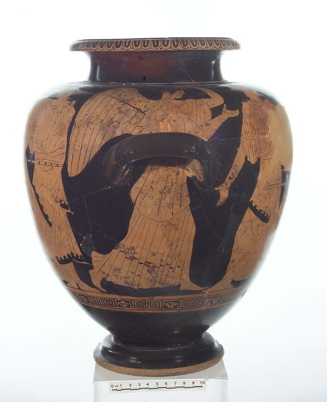 stamnos a figure rosse con scena di inseguimento. Pittore della Nascita di Atena