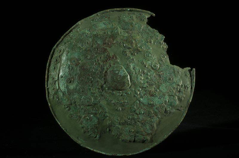 disco-corazza in lamina di bronzo, decorato a sbalzo