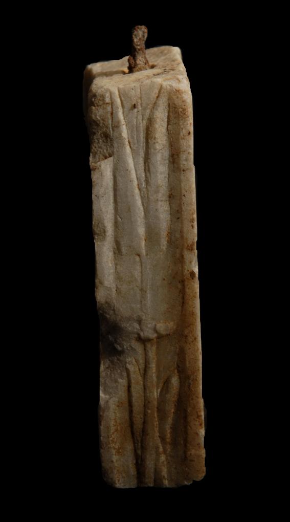 elementi architettonici e di rivestimento, elementi architettonici, fusto decorato di pilastro . Il frammento ha i lati superiore ed inferiore fratturati. Da quello superiore fuori esce il perno di ferro ancora "in situ". Le superfici a vista sono decorate da un motivo vegetale. Su una delle facce del lato lungo è presente uno stelo centrale da cui originano 4 foglie e due steli più piccoli con corolle, foglie e fiori; ai lati la decorazione è incorniciata da una modanatura a gola rovescia. La faccia opposta presenta: la parte terminale di uno stelo con la corolla da cui ha origine uno stelo centrale e due laterali con corolle, foglioline e fiori. Su un fianco: stelo centrale con calice e corolla. Sul fianco opposto: stelo centrale con foglie, corolla e calice