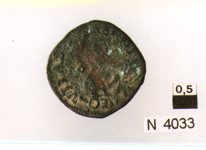 R/ busto radiato a destra; V/ cavallo gradiente a destra con la zampa destra sollevata,