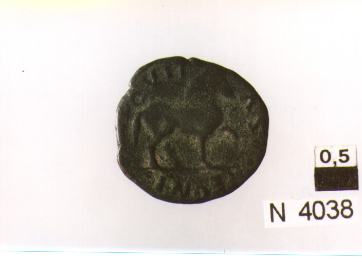 R/ busto radiato a destra; V/ cavallo gradiente a destra con al zampa destra sollevata,