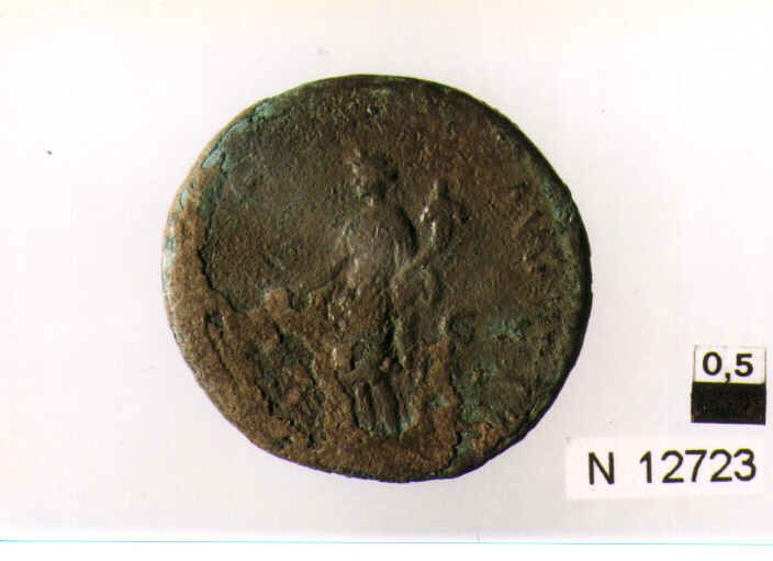 R/ testa di Vespasiano(?) a destra; V/ Felicitas(?) stante a sinistra concornucopia,