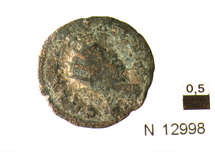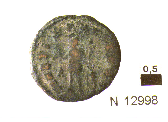 R/ testa radiata di imperatore Gallieno a destra; V/ Marte stante a sinistra con ramo d'olivo, lancia e scudo,