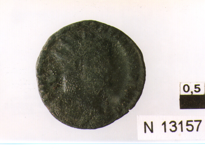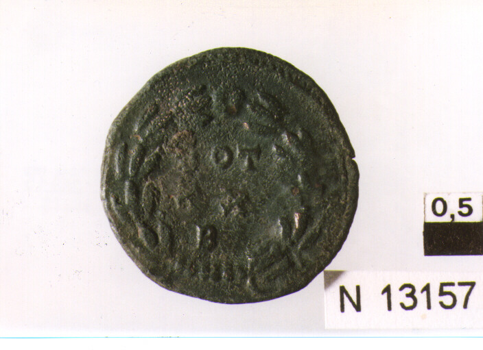 R/ busto di Galerio Massimiano(?), radiato a destra; V/ corona d'alloro contenente iscrizione,