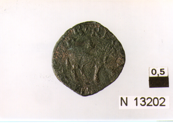 R/ testa radiata a destra; V/ sopra asticella orizzontale cavallo gradiente a destra, con zampa sinistra alzata,