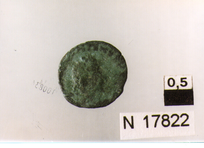 R/ busto a destra, poco leggibile; V/ corona d'alloro contenente iscrizione,