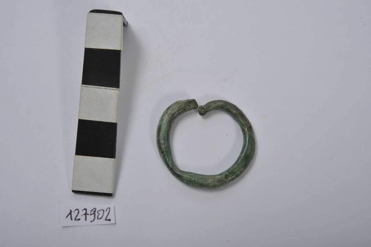Anellino schiacciato ovale con due fascette ripiegate e ribattute attorno a ciascun lato dell'anello