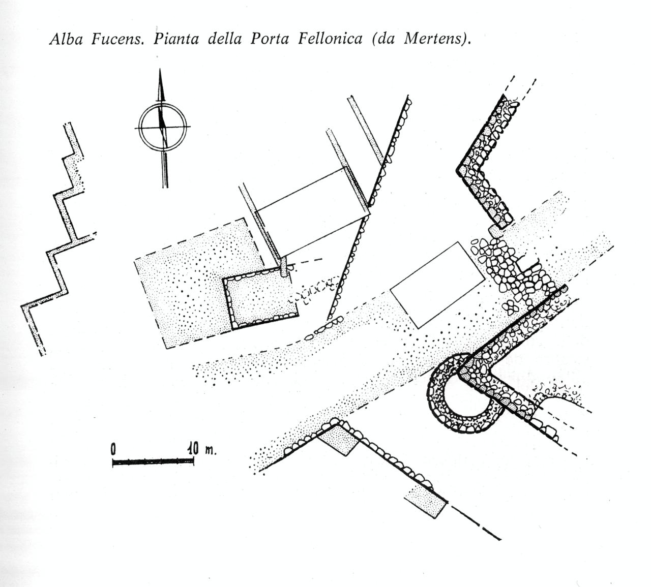 La porta settentrionale si apre all'altezza del grande terrazzamento tardorepubblicano della città. Essa consiste in un'apertura di circa 4 m, fiancheggiata da muri che si prolungano verso l'interno, ed è rinforzata da un bastione a pianta quadrata, con scala di accesso. Sul retro del bastione sono presenti due piazzole quadrangolari, ricondotte ad una fondazione iniziale della porta. La chiusura avveniva attraverso una saracinesca che scorreva dall'alto, intuibile dalla presenza di una scanalatura scavata direttamente nei blocchi (cm 30 x 12) conservata su entrambi i fianchi dell'ingresso