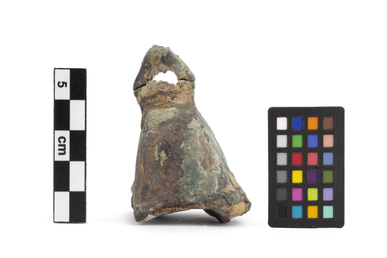 - NOTIZIE STORICO CRITICHE Ampiamente diffusi nel mondo romano, i campanelli (anche detti tintinnabula) erano utilizzati nella sfera quotidiana come segnalatori acustici: indicavano l'apertura e la chiusura delle terme, dei mercati o degli incontri in luoghi diassemblea pubblica, accompagnavano il passo dei reparti dell'esercito, davano l'allarme in caso di incendio. Essi erano anche utilizzati, con lo scopo di riunirli, difenderli e farli riconoscere dagli uomini, al collo degli animali: buoi, cavalli(Stefani 2003, p. 205), pecore, maiali, asini. Il valore apotropaico attribuito al loro suono, in grado di scacciare gli spiriti malevoli, li rese frequente ornamento della suppellettile domestica: in area vesuviana sono spesso di complemento alucerne e statuine itifalliche (Ciarallo/De Carolis 1999, pp. 268-269, n. 350; Cibi e sapori 2005, pp. 123-124)