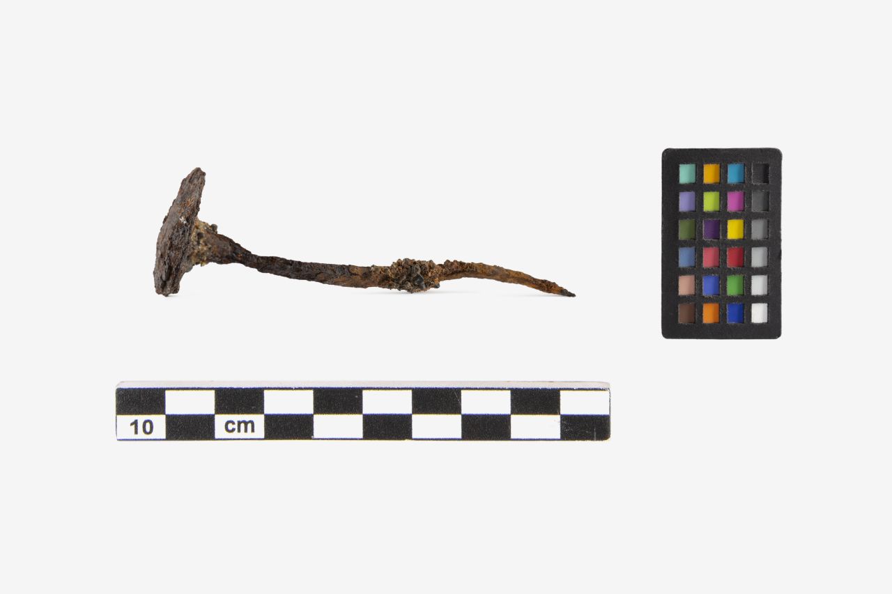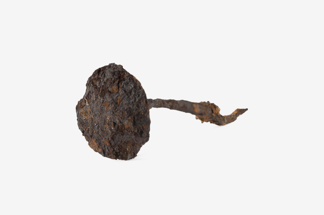 Chiodo in ferro con testa circolare ed appiattita e gambo a sezione quadrata con estremità appuntita
