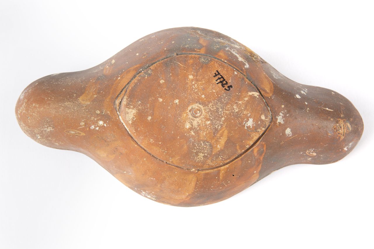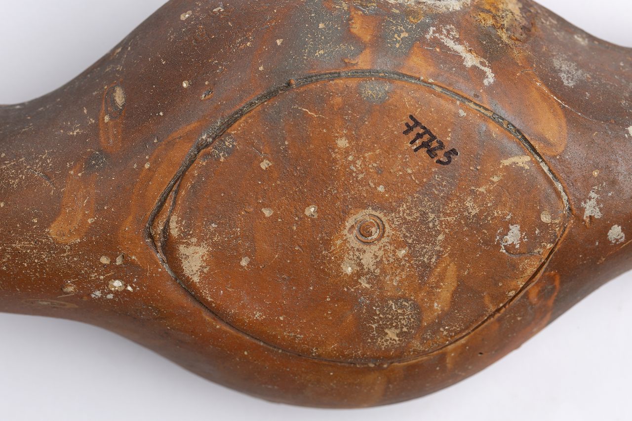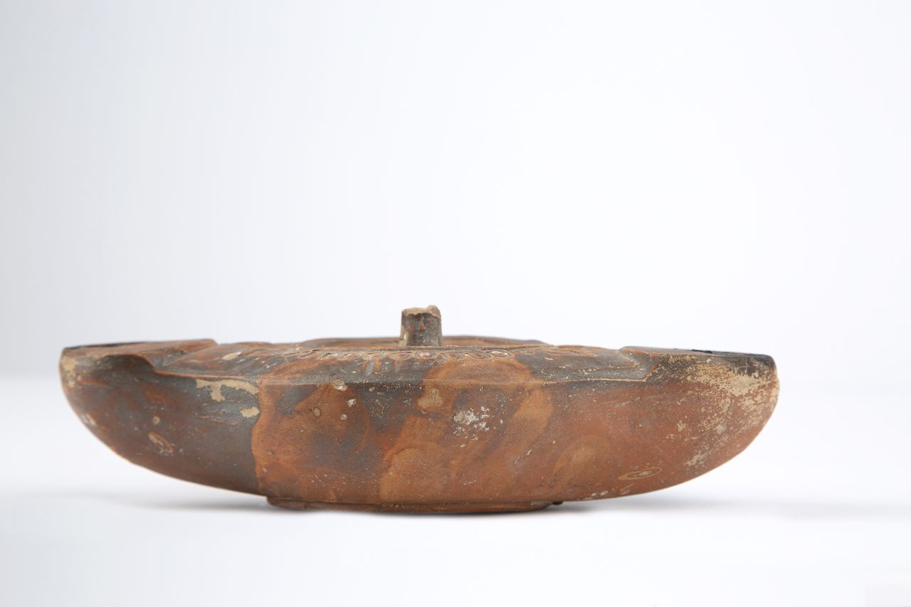 - NOTIZIE STORICO CRITICHE Il tipo, attestato nelle città vesuviane (Cirulli Irelli 1977, pp. 66-67; Roux-Barrè, tav. LII), è assai raro nel mondo romano e nelle collezioni museali (Walters 1914, p. 69 n. 469, Menzel 1969, p. 130, n. 744). Il rinvenimento delle matrici di questa tipologia entro la fornace di una bottega pompeiana (Cirulli Irelli 1977, p. 66 n. XXIV) e la rarità nella distribuzione inducono a ritenere che questa fosse una produzione che si andava affermando all'epoca dell'eruzione