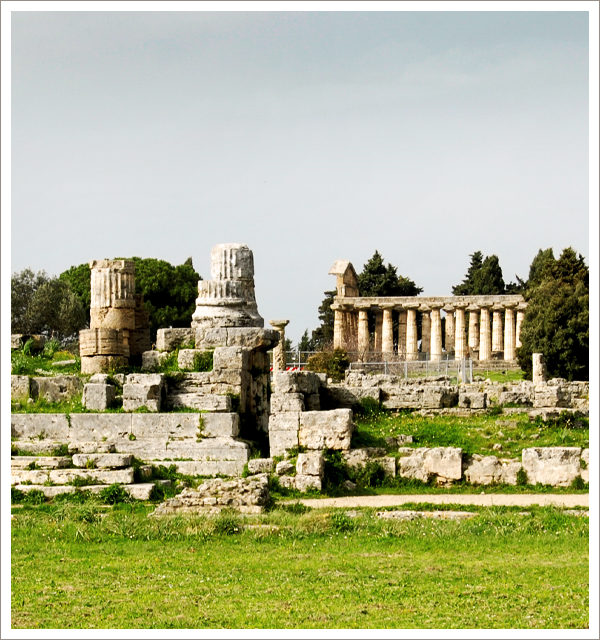 - NOTIZIE STORICO CRITICHE Le tracce dei primi insediamenti umani nella zona in cui un gruppo di coloni greci provenienti da Sibari fonderanno Poseidonia (che in età romana prenderà il nome di Paestum) risalgono alla preistoria, come dimostra il rinvenimento di reperti e resti insediativi databili dal Paleolitico all’età del Bronzo trovati all’interno dell’area che costituisce oggi il parco archeologico di Paestum. Secondo quanto racconta Strabone Poseidonia sarebbe stata fondata dai sibariti alla fine del VII secolo a.C. per avere uno sbocco commerciale sul Tirreno. Il nome della colonia deriverebbe dal dio Poseidone, che secondo la leggenda aveva protetto il viaggio dei coloni dallo Ionio al Tirreno. Il primo avamposto fu stabilito sul promontorio di Agropoli ma la sede definitiva fu individuata nella valle del Sele. Il nuovo centro conobbe il periodo di suo massimo splendore tra la metà del VI e la metà del V secolo a.C.,anche in relazione all’arrivo di una nuova ondata di coloni fuggiti da Sibari dopo la sua distruzione nel 510 a.C. In questo periodo Poseidonia acquisì la forma urbana ancora oggi riconoscibile, con la grande agorà in posizione centrale e i due santuari più importanti ai lati. Al 560 a.C. risale il tempio più antico, comunemente denominato Basilica (probabilmente dedicato a Hera); nel 510 a.C. viene realizzato il cosiddetto Tempio di Cerere (in realtà dedicato ad Atena), il 460 quello di Nettuno (dedicato in realtà a Zeus o ad Apollo). A completamento della monumentalizzazione degli spazi pubblici furono costruiti nell’agorà l’heroon, sacello monumentale dedicato all’eroe fondatore della città, e l’ekklesiasterion, luogo deputato alle pubbliche assemblee. Verso la fine del V sec. a.C. il comando della città passa nelle mani dei Lucani, popolazione indigena dell’entroterra che si diffonde capillarmente nel territorio e sostituisce la vecchia classe dirigente di etnia greca. Poseidonia continua ad avere un ruolo dominante, come testimoniano l’altissima qualità delle sue produzioni artigianali e le tombe dipinte dell’aristocrazia che rappresentano scene di vita di particolare varietà e ricchezza. L’assetto urbanistico e lo stile di vita della città non cambiano, tranne nella breve parentesi (332-331 a.C.) della conquista di Poseidonia da parte del re dell’Epiro Alessandro il Molosso. Il vero cambiamento è determinato dalla conquista romana: nel 273 a.C. i Romani s’impadroniscono di Poseidonia e vi insediano una colonia latina, cambiando il nome della città in Paestum. Da quel momento l’area entra nell’orbita romana e cambia anche la sua fisionomia urbana, con la realizzazione del Foro nella parte meridionale dell’agorà greca e la costruzione del cosiddetto Tempio della Pace (probabilmente un Capitolium), e di altri edifici pubblici, il Comizio, il santuario della Fortuna Virile, la Curia, il Macellum, l’anfiteatro, le terme. L’edilizia residenziale vede il crescere di abitazioni di lusso. Paestum in età romana perde progressivamente la sua importanza, anche perché si trova al di fuori delle grandi vie di comunicazione, diventando un piccolo centro. In età altomedievale è ancora in vita, come prova la trasformazione del Tempio di Cerere in chiesa cristiana. Fu abbandonata nell’VIII secolo, quando gli abitanti si rifugiarono nell’interno per sottrarsi alle incursioni saracene e all'impaludamento, che aveva reso insalubre l’area costiera. Il sito, caduto in abbandono, fu riscoperto nel Settecento e sottoposto a indagini sistematiche solo a partire dal XX secolo. Dal 1998 il sito archeologico di Paestum è patrimonio dell’UNESCO