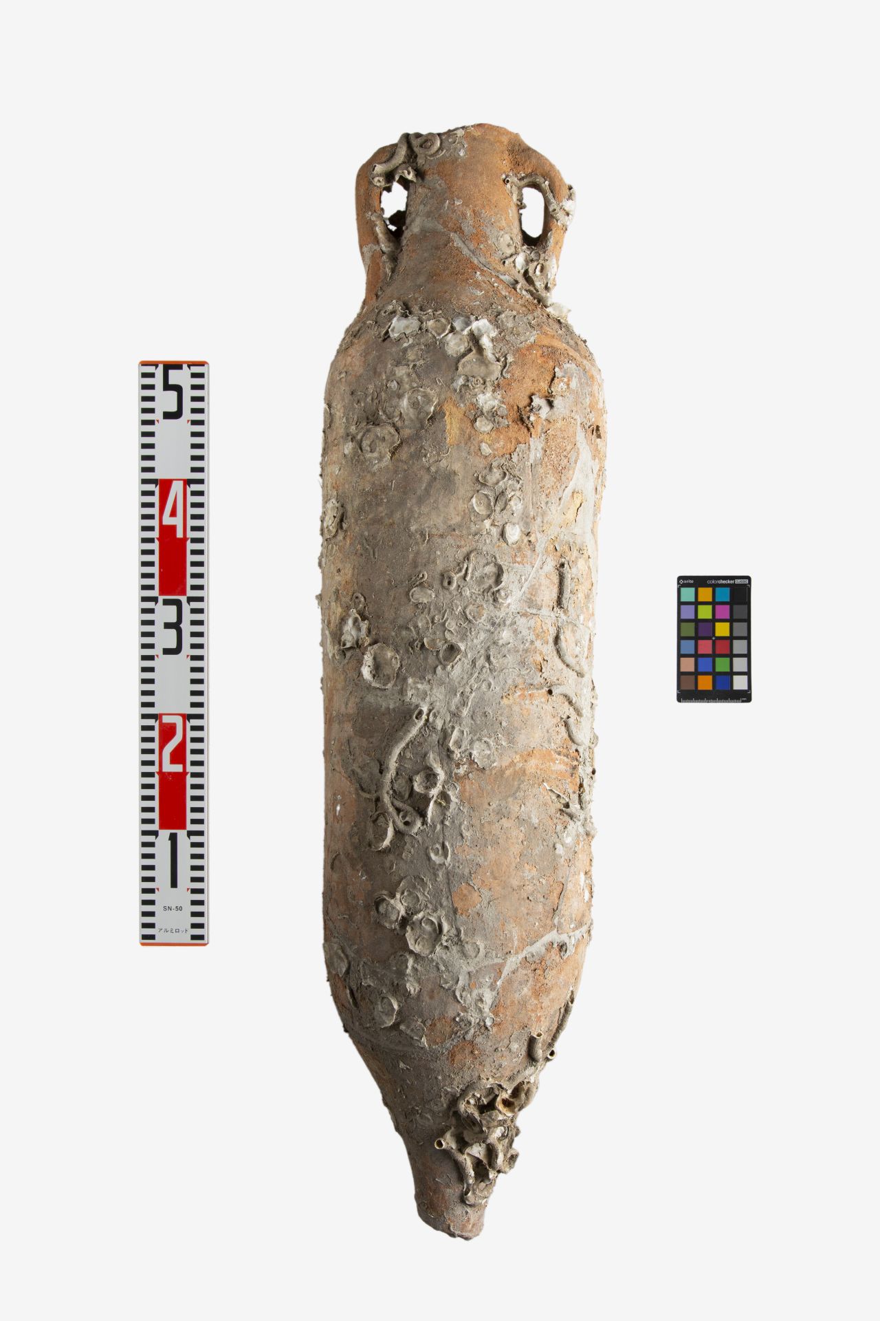 - NOTIZIE STORICO CRITICHE La forma è caratterizzata da un orlo dalla morfologia molto varia, più frequentemente svasato e ripiegato verso l’esterno; talvolta sono presenti graffiti incisi prima della cottura, costituiti per lo più da singoli simboli posti sul puntale; gli impasti variano dal rosso, al rosso chiaro, all’arancione. La cronologia di questi contenitori va dal primo quarto del V alla fine del VII sec. d.C