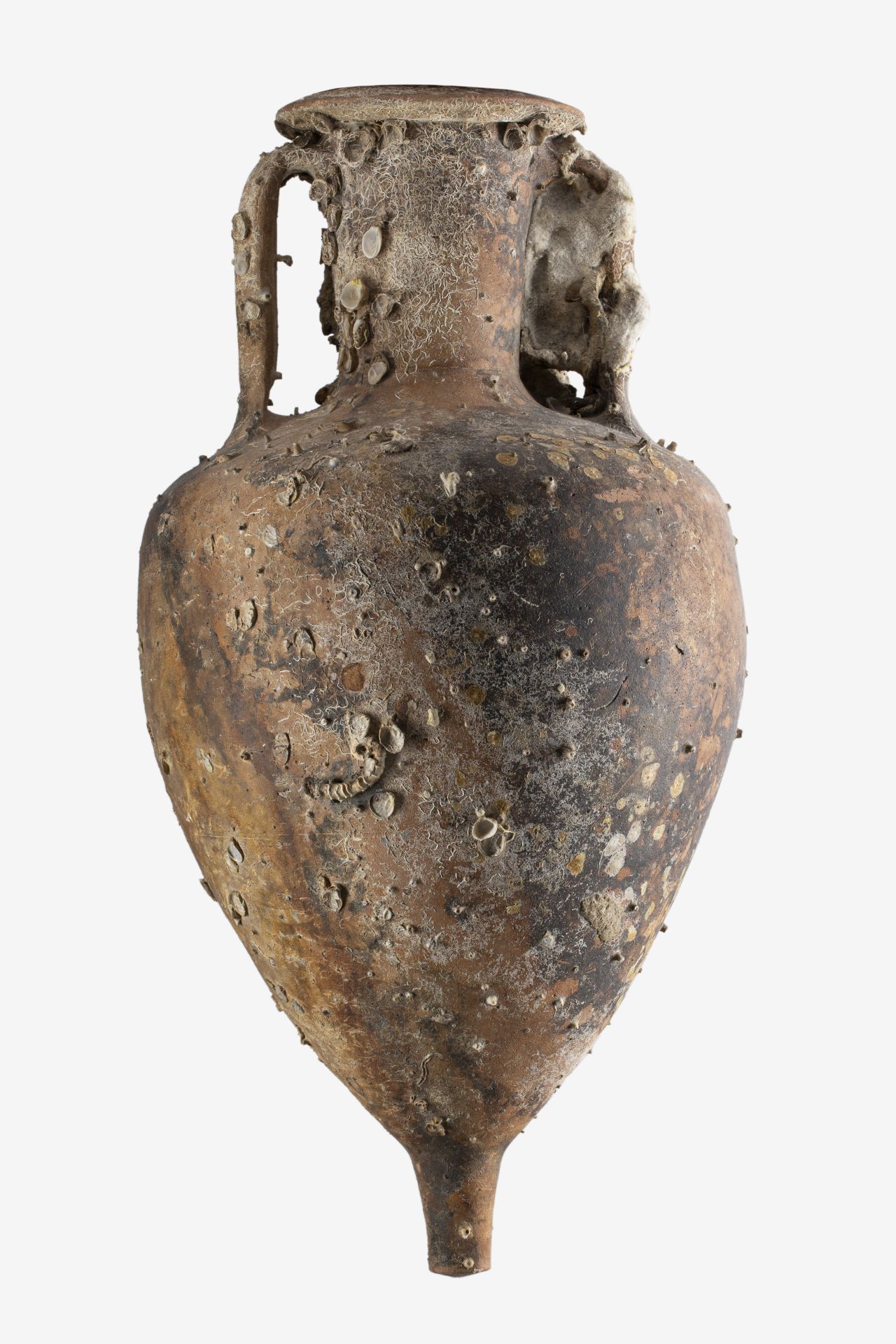 - NOTIZIE STORICO CRITICHE E' caratterizzato da un impasto molto compatto di colore giallo rossiccio, con piccoli inclusi micacei e rari inclusi bruni di piccole dimensioni. Anfore di questo tipo costituiscono il gruppo più antico delle cosiddette “greco-italiche”, corrispondente alla forma A individuata da Lyding-Will (E. Lyding Will, Greco- italic Amphoras, in Hesperia 51.3 (1982), pp. 338-356). Il tipo, molto diffuso in contesti datati tra la prima metà e gli anni centrali del III sec. a.C. ed, in particolare per questo tipo, il grosso del commercio nel cui ambito era veicolato questo vasellame, doveva essere quello del vino (B. Bechtold, Observations on the amphora repertoire of Middle Punic Carthage, in R.F. Docter (Ed.), Carthage Studies 2. University of Ghent, Ghent 2008, p. 51). Le aree di produzione delle anfore MGS V non sono per ora ben determinabili, ma sono probabilmente da ricercarsi in più centri della Sicilia e della Magna Grecia, in particolare dell’area campana