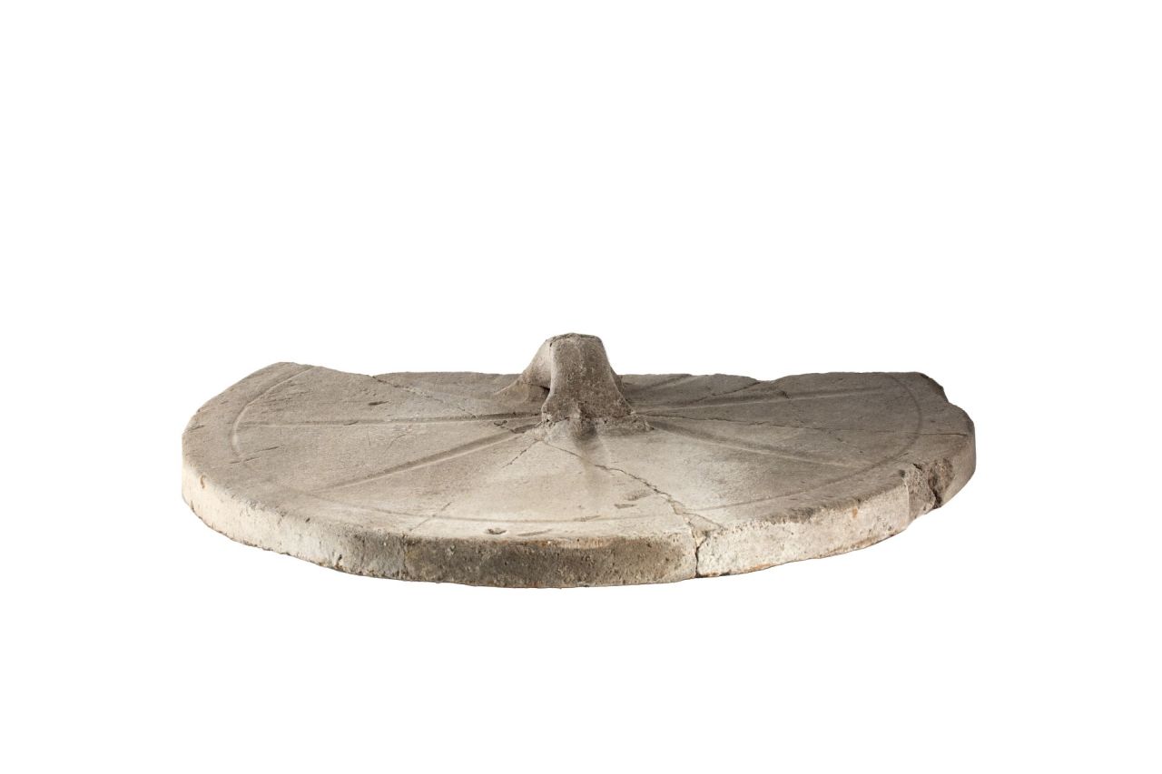 - NOTIZIE STORICO CRITICHE I dolia fittili sono contenitori di grandi dimensioni adoperati per conservare le derrate alimentari; quelli destinati alla conservazione del vino venivano interrati per la tutela del prodotto dagli sbalzi di temperatura. Inoltre i contenitori prevedevano, per un'ulteriore protezione dei prodotti conservati al loro interno, un sistemadi copertura costituito da coperchi fittili.I coperchi di dolio sono menzionati già dagli agronomi romani come uno degli elementi necessari in una villa (CATO, Agr. 10.4; 11.10; 13.2; VARRO, Rust. 1.22.4). Difatti, coperchi di questo tipo sono ampiamente attestati nelle cellae vinariae delle ville vesuviane (ad esempio, a Boscoreale, nella Villa della Pisanella e nella Villa Regina: vedi Stefani 2015, p. 126) e in diversi altri siti di età romana della Penisola, come ad esempio Scoppieto (Nicoletta 2007, pp. 162-163) e Settefinestre (Celuzza 1986, p. 59)