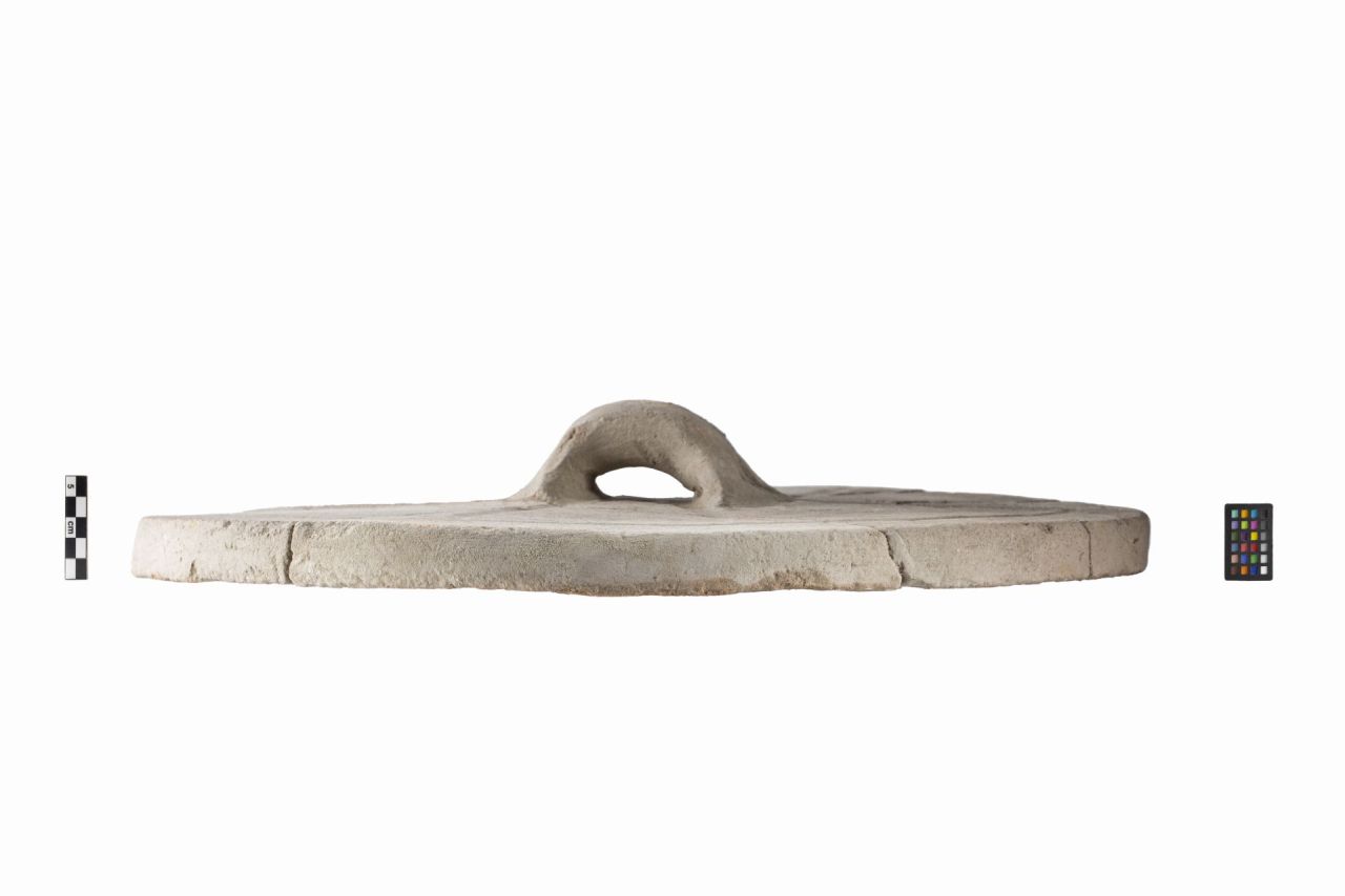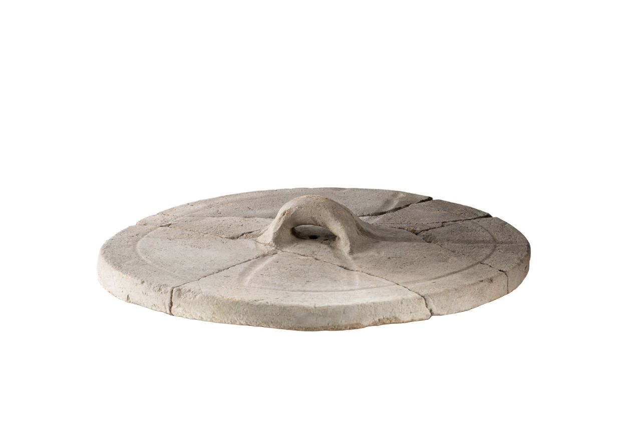 - NOTIZIE STORICO CRITICHE I dolia fittili sono contenitori di grandi dimensioni adoperati per conservare lederrate alimentari; quelli destinati alla conservazione del vino venivano interratiper la tutela del prodotto dagli sbalzi di temperatura. Inoltre i contenitoriprevedevano, per un'ulteriore protezione dei prodotti conservati al loro interno,un sistemadi copertura costituito da coperchi fittili.I coperchi di dolio sono menzionati già dagli agronomi romani come uno deglielementi necessari in una villa (CATO, Agr. 10.4; 11.10; 13.2; VARRO, Rust.1.22.4). Difatti, coperchi di questo tipo sono ampiamente attestati nelle cellaevinariae delle ville vesuviane (ad esempio, a Boscoreale, nella Villa dellaPisanella e nella Villa Regina: vedi Stefani 2015, p. 126) e in diversi altri siti dietà romana della Penisola, come ad esempio Scoppieto (Nicoletta 2007, pp.162-163) e Settefinestre (Celuzza 1986, p. 59)