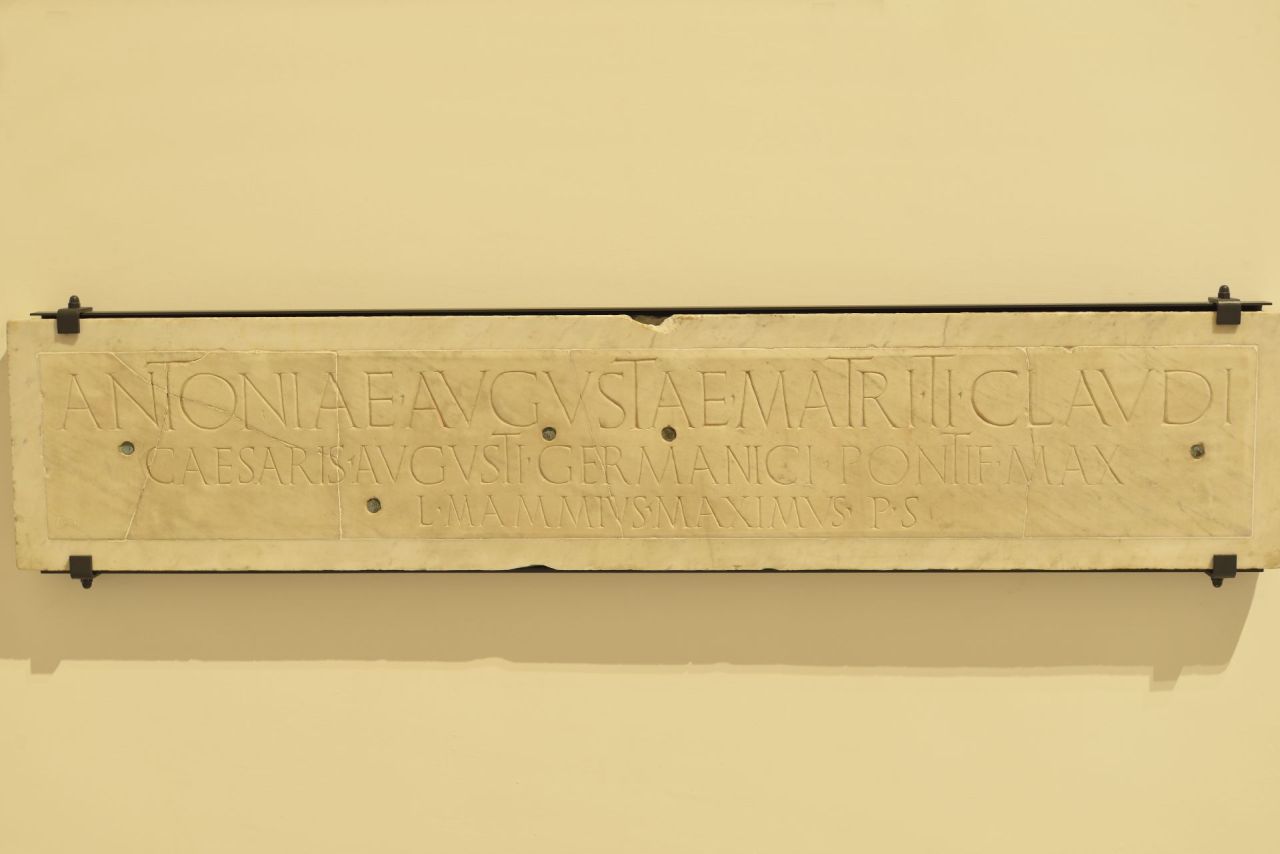 - ISCRIZIONI Antoniae Augustae matri Ti(berii) Claudi Caesaris Augusti Germanici potif(icis) max(imi) L(ucius) Mammius Maximus p(ecunia) s(ua) - capitali - a incisione - latino