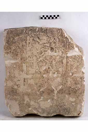 lastra quasi rettangolare, pertinente a parte inferiore di stele con ornamenti