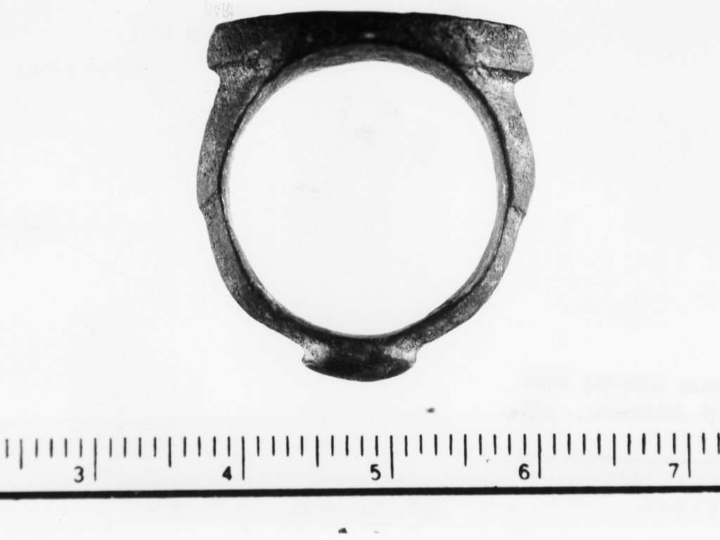 anello con castone ogivale recante incisa una decorazione a tratti obliqui e punte